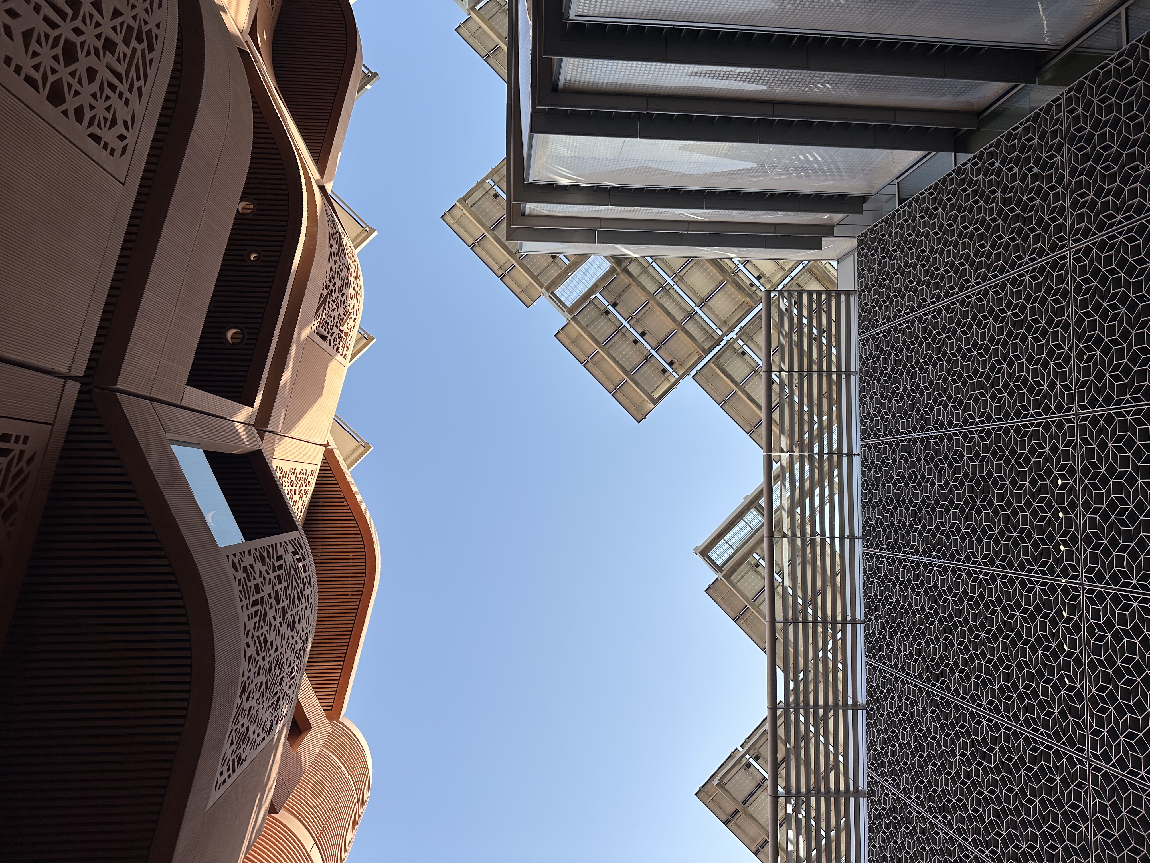 Our visit focused on its public realm, where passive cooling strategies, shaded pedestrian corridors, and design principles drawn from traditional Arabic urbanism are shaping a climate-responsive urban fabric. The introduction of co-living and co-working models also reflects an ongoing effort to prioritise social sustainability and support a cohesive shared urban life.